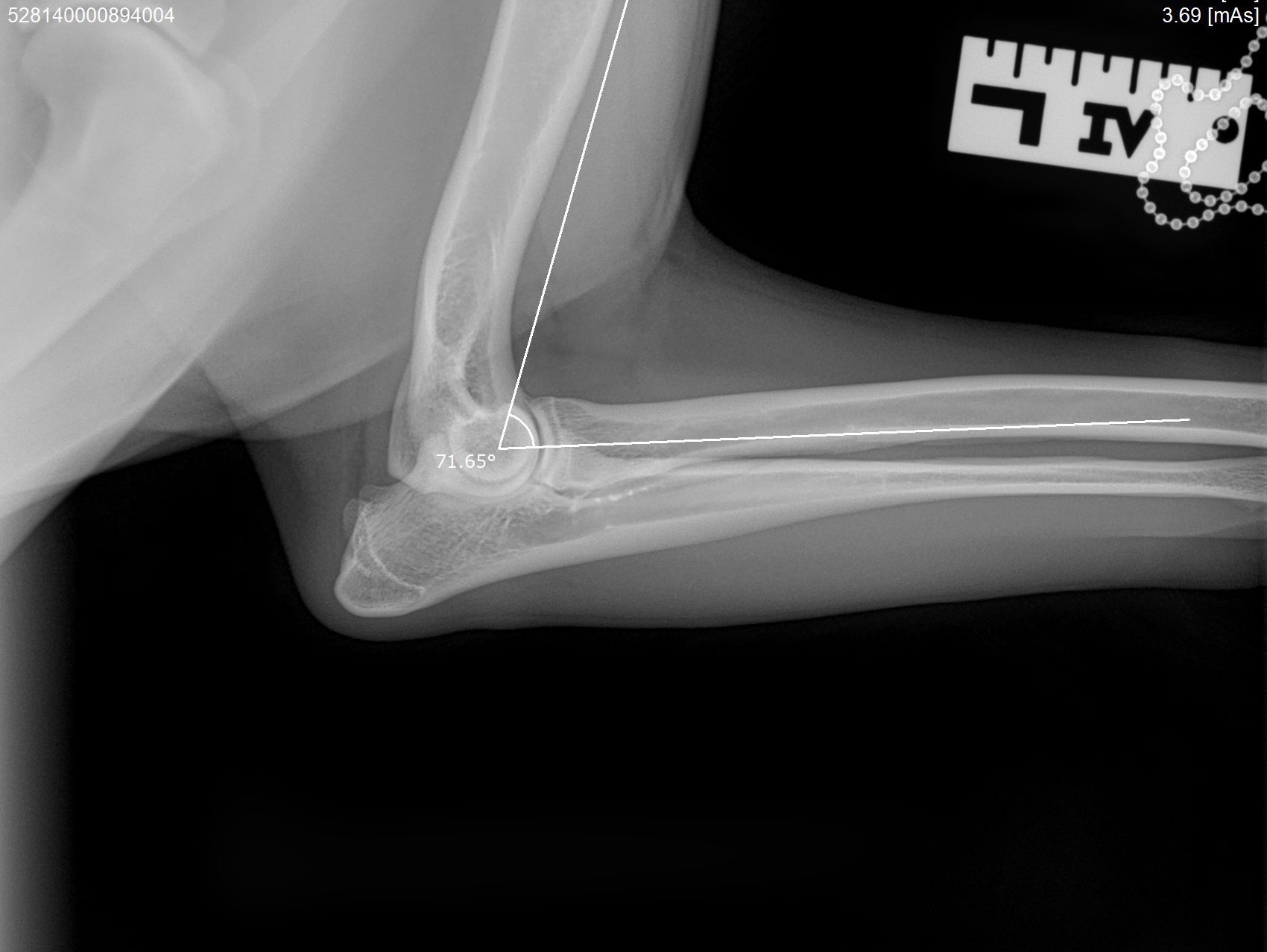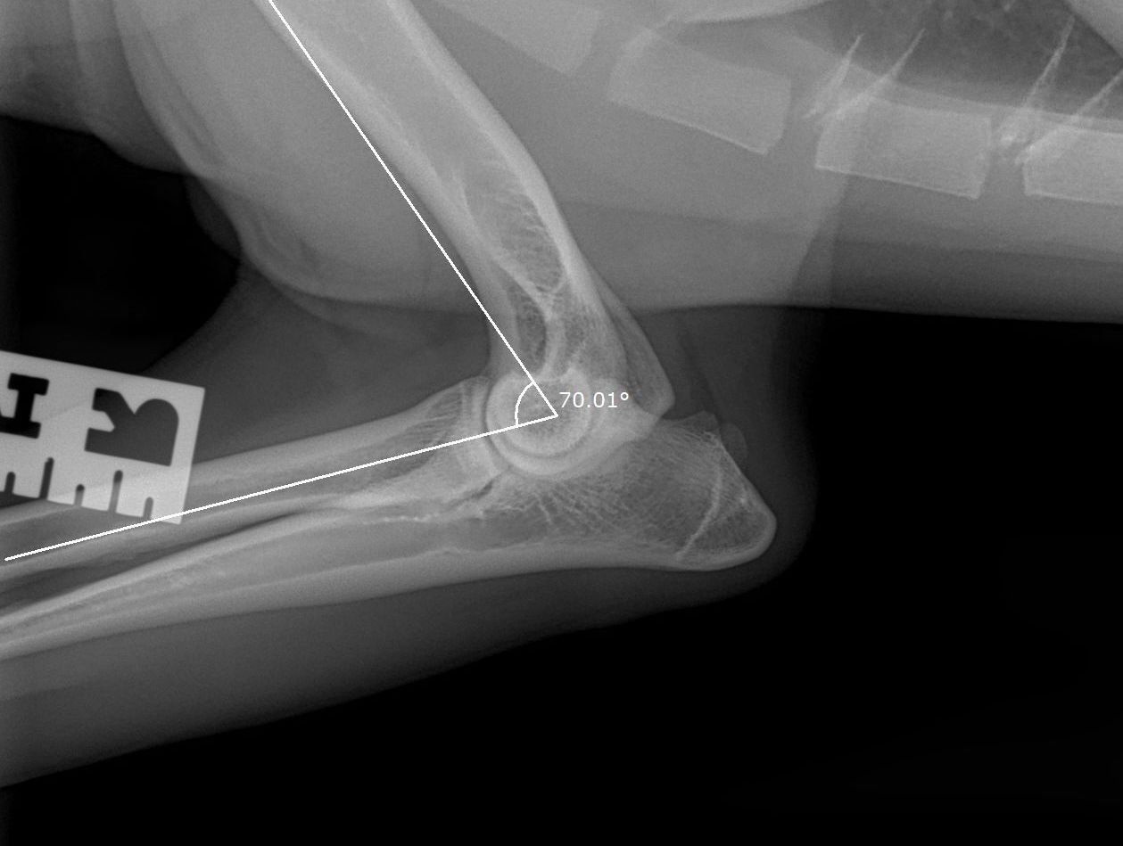 Voor alle andere rassen volstaat een onderzoek met twee foto’s per elleboog. Meestal passen wij een lichte sedatie toe bij het maken van de officiële ED-foto’s. Dit is nodig om een kwalitatief goede foto te maken, welke aan de hoge eisen van de beoordelingscommissie moet voldoen. Uw hond moet op zijn of haar zijde en borst liggen, waarbij de elleboog in verschillende houdingen wordt gelegd.